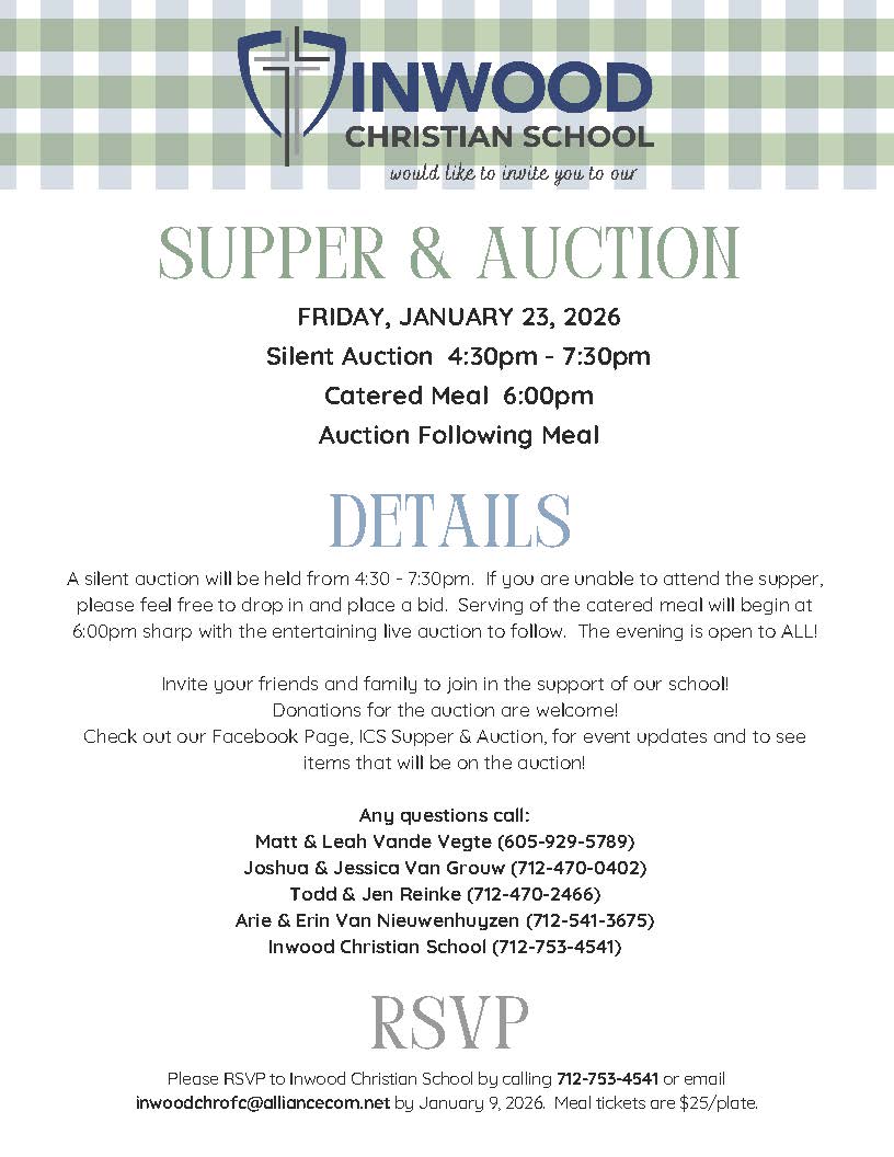 About ICS About ICS Theme Members Directory Bullying Policy Wellness Policy Healthy Snacks Guidelines Affirmative Statement CSIP Employment Opportunities Newsletters Calendar Calendar School Calendar Hot Lunch Program Application for Free/Reduced Meals Diet Modification Form Academics Academics SonLight Preschool Kindergarten 1st-2nd 3rd-4th 5th-6th 7th-8th Music Iowa Core Curriculum Iowa Core Vision Statement Supply List Photos Photos ICS Tractor Ride 2019 Treasure Island Musical Support Support ICS Supper & Auction $CRIP Raise Right Hearts & Hands NICSTO ICS Tractor Ride Christian Schools International Heartland Christian Schools Contact Us Contact Us Staff Directory Employment Opportunities ICS Supper & Auction Support ICS Supper & Auction $CRIP Hearts & Hands NICSTO ICS Tractor Ride Christian Schools International Heartland Christian Schools ICS Supper & Auction